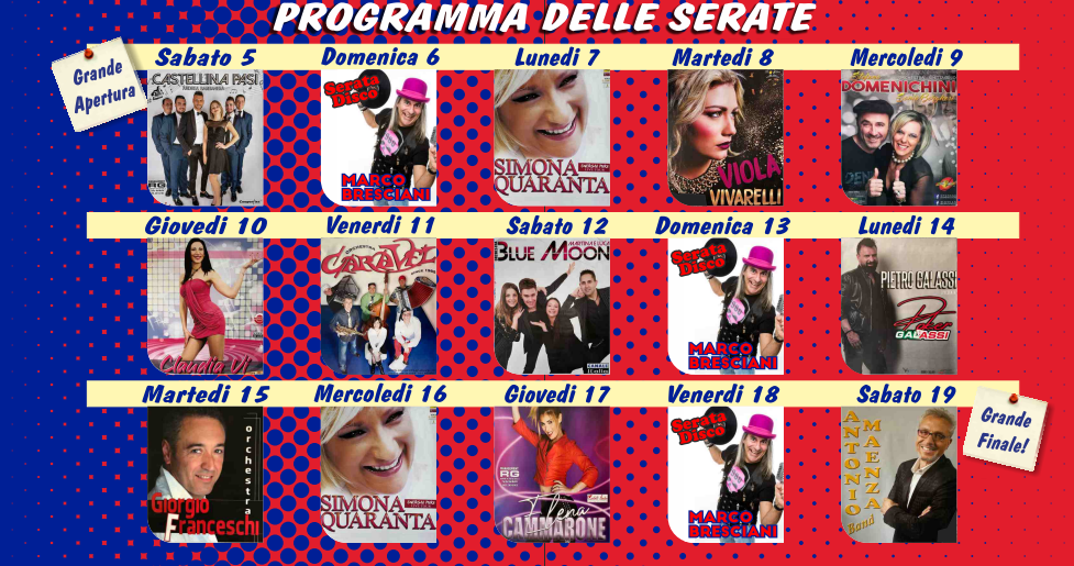 Tradizionale manifestazione organizzata dalla contrada il Ponte con serate danzanti, cocktail bar e un fornitissimo stand enogastronomico con cucina tipica, bomboloni e panzanelle. Non mancate!