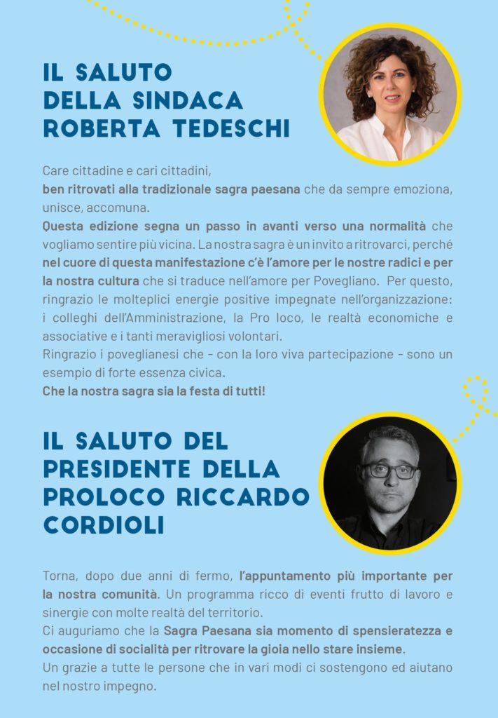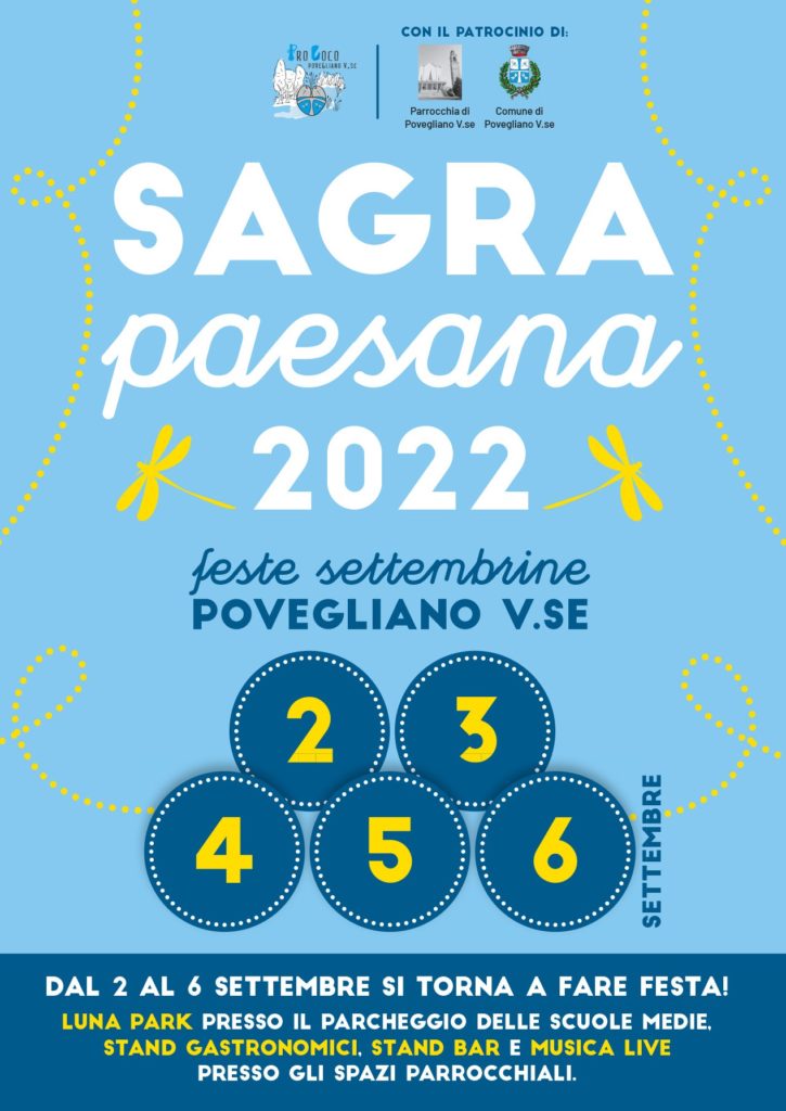 SAGRA PAESANA – FESTE SETTEMBRINE DAL 2 AL 6 SETTEMBRE 2022  a POVEGLIANO VERONESE (VR)