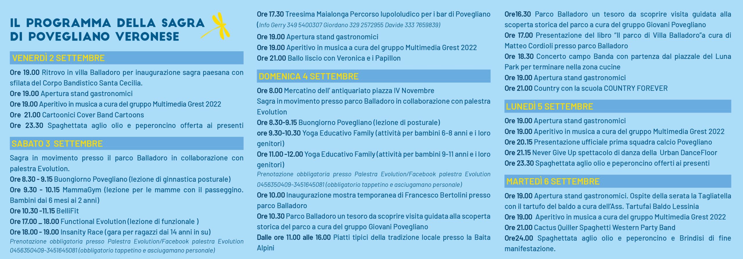 Tradizionale manifestazione organizzata dalla Pro Loco di Povegliano Veronese con il patrocinio della Parrocchia e del Comune di Povegliano Veronese con serate musicali e danzanti, attività ginniche organizzate in collaborazione con la palestra Evolution, momenti culturali con visite guidate e presentazioni di libri, luna park, bar e un fornitissimo stand enogastronomico. non mancate!